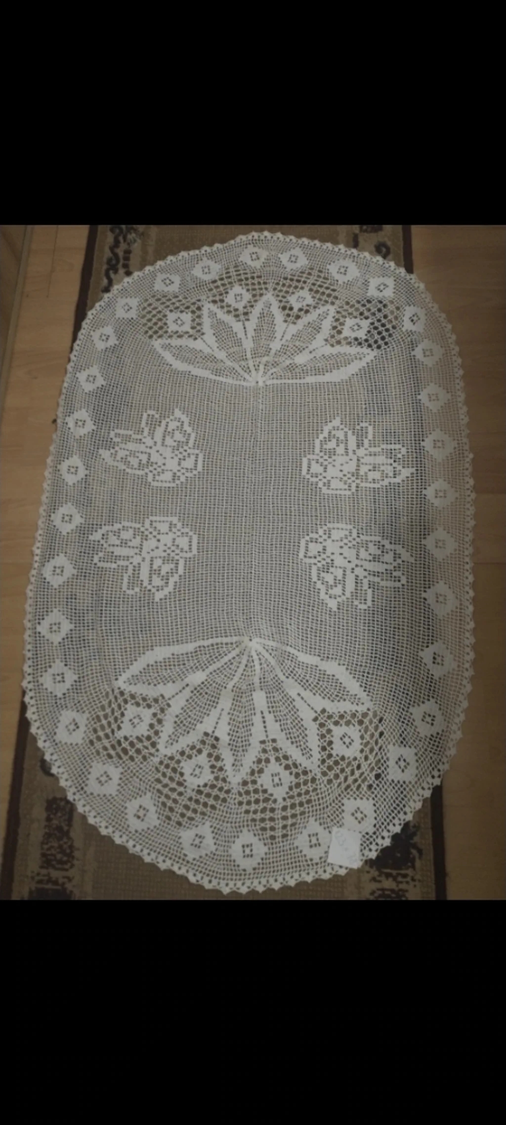 Ručni heklani stolnjaci i miljei – više modela – Tradicionalni ručni rad, nežna pamučna pređa u beloj/ekru nijansi – Motivi: cvetni i geometrijski (kvadrati, dijamanti, rozete) – Fini mrežasti vez i čipkasti rubovi; pojedini modeli sastavljeni od heklanih kvadrata spajanih dekorativnim šavom – Prikladni za trpezarske i klub stočiće, komode ili kao dekorativni prekrivači – Lako uklopivi u klasičan, rustičan ili vintage enterijer – Održavanje: ručno pranje ili nežan program, blagi deterdžent, sušenje ravno položeno; preporučuje se blago peglanje sa parom preko tanke tkanine Napomena: Na fotografijama je više različitih uzoraka i dimenzija (pravougaoni [još…]